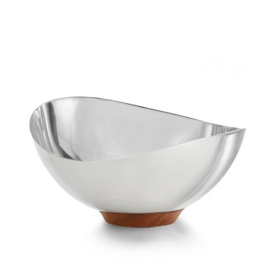 Nambe Pulse Nut Bowl, 8” Stainless Steel Serving Dish with Removable Magnetic Acacia Wood Base, Modern Kitchen & Tabletop Accent