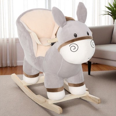 Mshliw Animal Rocker Plush Horse Toy,Kids Rocking Horse Ride-On Toy with Soft Plush Body,Classic Wooden Rocker for Toddlers 3+,Indoor Riding Toy Gift