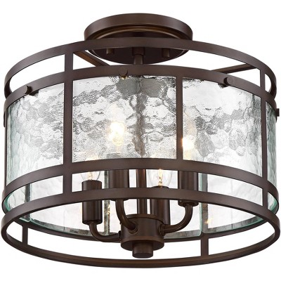 Franklin Iron Works Elwood Modern Ceiling Light Semi Flush Mount Fixture 13 1/4" Wide Oil Rubbed Bronze 4-Light Water Glass Drum Shade for Bedroom