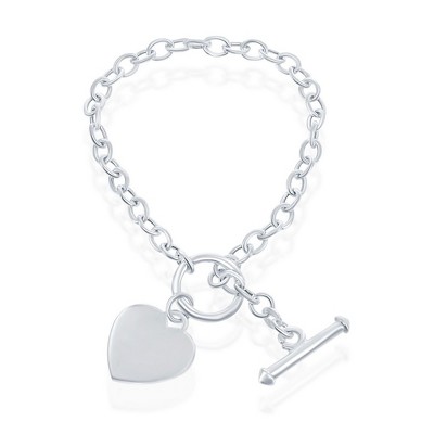 Bella Silver Sterling Silver Engravable Heart Charm Rolo Chain Toggle Bracelet - Silver - 7.5 Inch