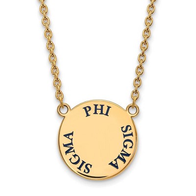Black Bow Jewelry 14k Yellow Gold Plated Sterling Silver Phi Sigma Sigma Greek Life Enameled Name Large Disc Necklace 18 Inch