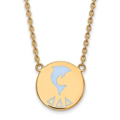 Black Bow Jewelry 14k Yellow Gold Plated Sterling Silver Delta Delta Delta Greek Life Enameled Mascot Large Disc Necklace 18 Inch