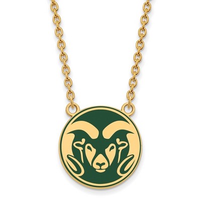 Black Bow Jewelry 14k Yellow Gold Plated Sterling Silver Colorado State Rams NCAA Enameled Large Disc Necklace 18 Inch
