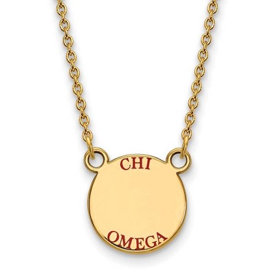 Black Bow Jewelry 14k Yellow Gold Plated Sterling Silver Chi Omega Greek Life Enameled Name Small Disc Necklace 18 Inch