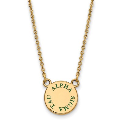 Black Bow Jewelry 14k Yellow Gold Plated Sterling Silver Alpha Sigma Tau Greek Life Enameled Name Small Disc Necklace 18 Inch