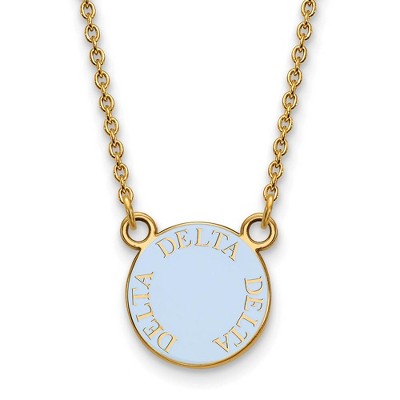 Black Bow Jewelry 14k Yellow Gold Plated Sterling Silver Delta Delta Delta Greek Life Full Enameled Mascot Small Disc Necklace 18 Inch