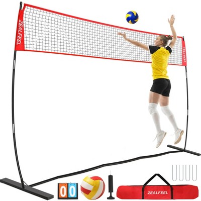 Zealfeel Volleyball Net Set: Height Adjustable Freestanding Training Net for Backyard & Outdoor Use. Includes All Accessories and Carry Bag