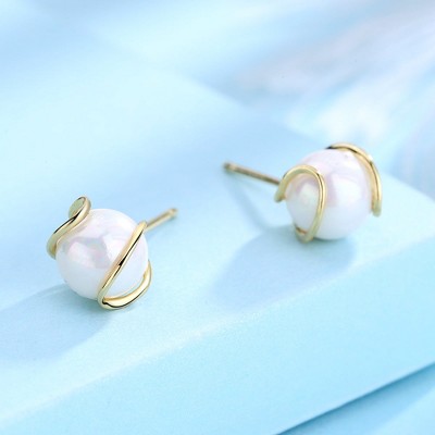 14K Gold Cultured Pearls over Sterling Silver Pearl and Caged Stud Earrings