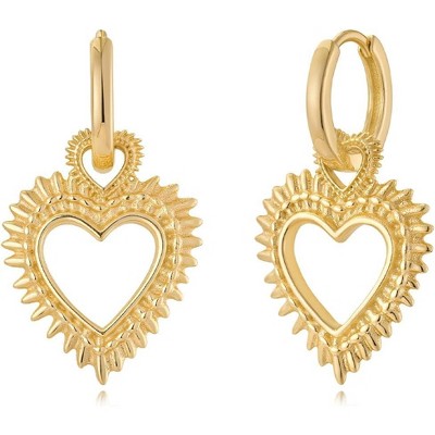 Bella Silver Sterling Silver Heart Charm Huggie Hoop Earrings - Gold Plated - Gold