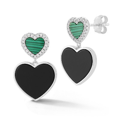 Sphera Milano Sterling Silver Triple Heart Front/Back Drop Earrings