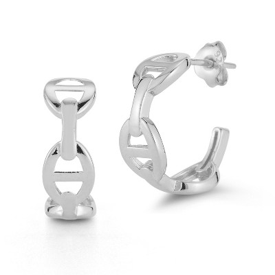Sphera Milano Sterling Silver Polished Mariner Link Hoop Earrings
