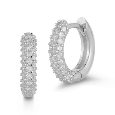 Sphera Milano Sterling Silver Front Pave Huggie Hoop Earrings