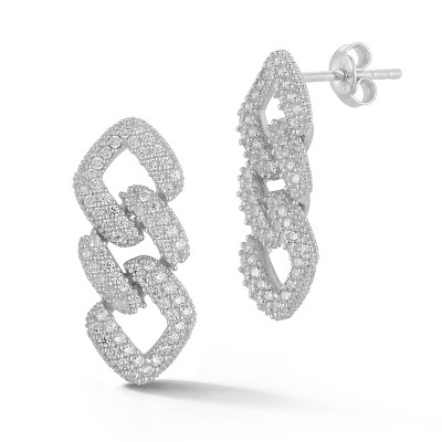 Sphera Milano Sterling Silver Pave Curb Chain Drop Earrings