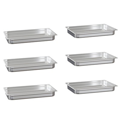 6 Pack Deep Stainless Steel Food Pans, 2.5 in Hotel Steam Table Pans, Restaurant Anti-Jamming Commercial Steam Table Pans