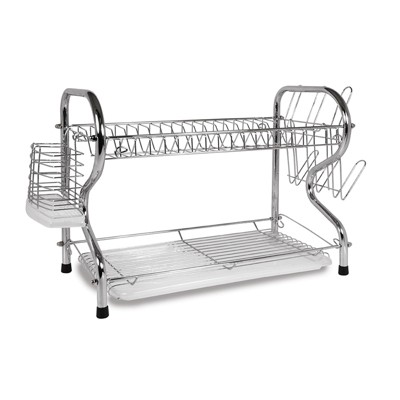 Trio Home Stainless 3-Piece Dish Drying Drainer Rack, Removable Utensil Holder and Drainboard - Grey