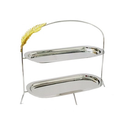 Nambé Portables Two-Tier Server – 14” Acacia Wood Display with Organic Silhouette & Smooth Finish – Ideal for Appetizers, Desserts & Table Settings