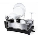 happimess Compact 17.25" Fingerprint-Proof Stainless Steel Dish Drying Rack With Wine Glass Holder, Stainless Steel/Black
