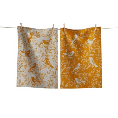 tag Canyon Print Birds & Vines Ochre Kitchen Towel Set - Everyday Dishtowels, Machine Washable, 26" x 18"