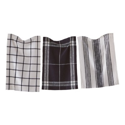 tagltd Classic Dishtowel Set Of 3 Check Stripe Window Pane Black Cotton Yarn Dye Slub Weave Enzyme Wash Machine Wash 26L x 18W