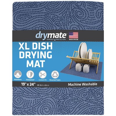 Drymate 19"x24" Dish Drying Mat - Light Blue Floral: Kitchen Drying Mat for Dishes, Machine Washable, Polyester