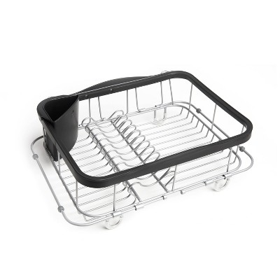 Home Zone Living Collapsible Dish Drying Rack with Push-Drain and Utensil Caddy, Medium