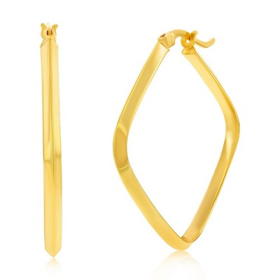 Bella Silver Sterling Silver, 32mm Paperclip CZ Open Hoop Earrings - Gold Plated - Gold