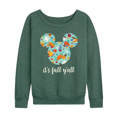 Women's - Disney - Its Fall Yall Lightweight French Terry Wide Neck Long Sleeve Graphic Shirt