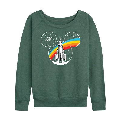Women's - Disney - Retro Space Ear Silhouette with Rocket Lightweight French Terry Wide Neck Long Sleeve Graphic Shirt