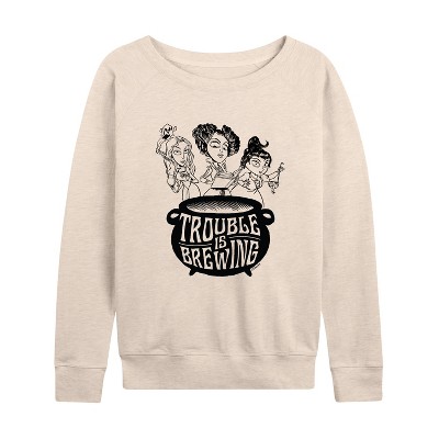 Women's - Disney - Trouble is Brewing Lightweight French Terry Wide Neck Long Sleeve Graphic Shirt