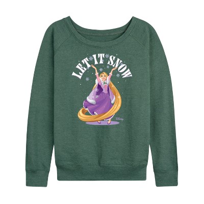 Women's - Disney - Let It Snow Gifts Lightweight French Terry Wide Neck Long Sleeve Graphic Shirt