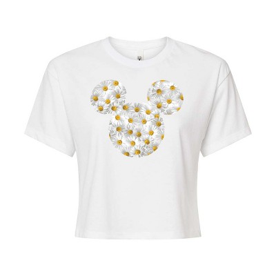 Women's - Disney - Mickey Head Daisies Cropped Graphic T-Shirt