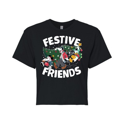 Women's - Disney - Festive Friends Cropped Graphic T-Shirt