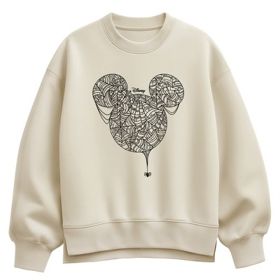 Women's - Disney - Mickey Head Spider Web Oversized Fleece Crew Sweatshirt