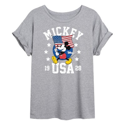 Women's - Disney - Mickey Waving Flag USA Oversized Graphic T-Shirt