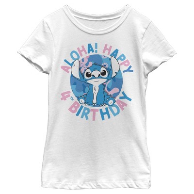 Girl's Lilo & Stitch Aloha! Happy 4th Birthday T-Shirt