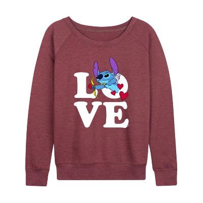 Women's - Lilo & Stitch - Love Cupid Stitch Lightweight French Terry Wide Neck Long Sleeve Graphic Shirt