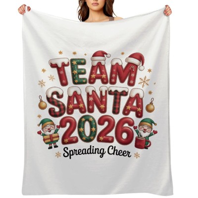 Lomsoe Santa Claus Bow Reindeer & Christmas Tree Print Flannel Blanket - All Seasons Soft and Warm Perfect for Living Room Decor, Sofa, Bed, Travel