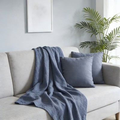 VCNY 50"x60" Tanya Striped Cotton-Rich Throw Blanket Gray/Ivory: Hypoallergenic, Microfiber Farmhouse Decor