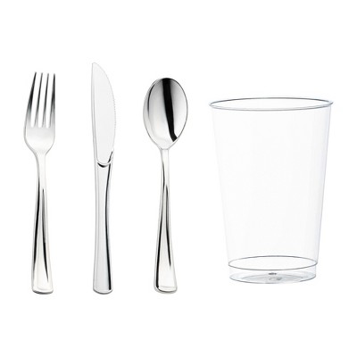 Smarty Had A Party Silver Disposable Plastic Cutlery and Cup Set - 120 Sets
