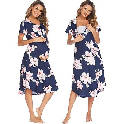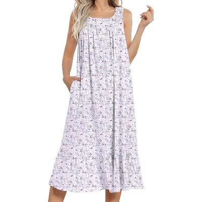 Miss Lillian Women's Floral Henley Ruffle Sleeveless Sleep Gown