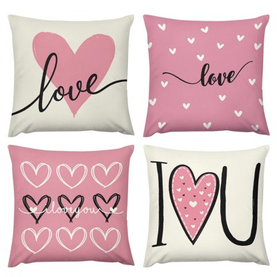 Set of 4 Valentine's Day Pillow Covers 18x18 Inch, Pink Love Heart, Decorative Cushion Cases for Sofa Couch Valentine Decor