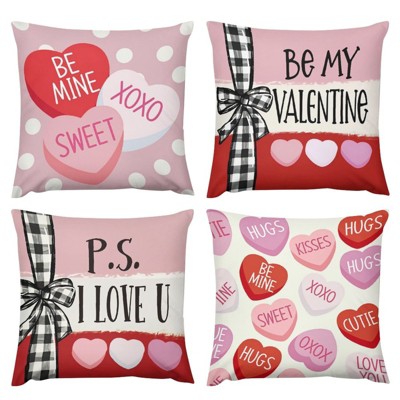 Set of 4 Valentine's Day Pillow Covers 18x18 Inch, Hugs and Kisses, Decorative Cushion Cases for Sofa Couch Valentine Decor