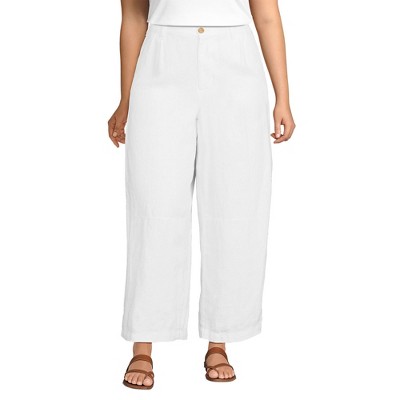 Lands' End Women's Linen High Rise Pleated Barrel Leg Pants