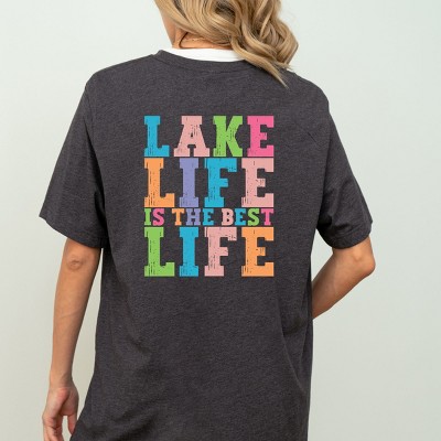 Simply Sage Market Lake Life Distressed Colorful Front and Back Design Short Sleeve Tee
