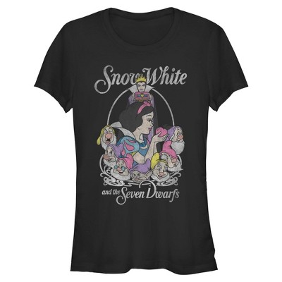 Juniors Womens Snow White and the Seven Dwarfs Classic Characters Distressed T Shirt