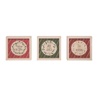 Transpac MDF Season's Greetings Box Signs Set of 3 Christmas Home Decorations Wall Sign Panels Wood