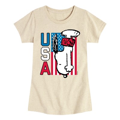 Girls' - Peanuts - Snoopy Woodstock USA Diving Fitted Short Sleeve Graphic T-Shirt