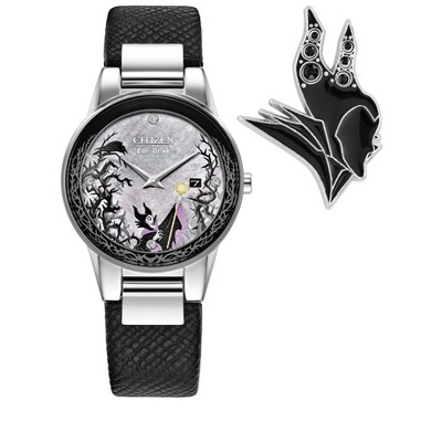 Disney Citizen Eco-Drive Watch Featuring Steamboat Willie Mickey Mouse Stainless Steel Case, Brown Leather Strap
