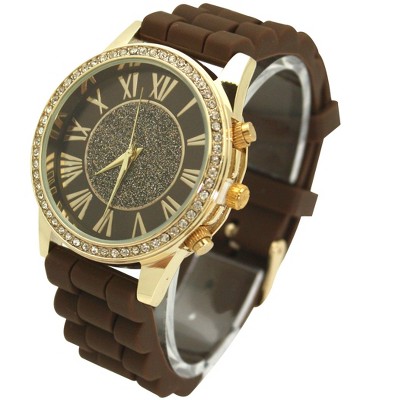 Olivia Pratt Rhinestone Bezel Silicone Strap Watch