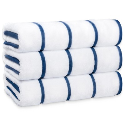 White Classic 100% Cotton Cabana Striped Oversized Beach Towels - 35x70" Set of 3